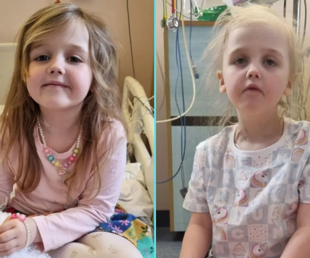 Na pierwszym zdjęciu widać szczęśliwą Poppy z włosami do ramion, lecz druga fotografia mocno chwyta za serce. Ukazuje, jak chemioterapia odbiła się na dziecku. Agresywne leczenie pozbawiło czterolatkę uśmiechu. Ma bladą skórę i przerzedzone włosy.