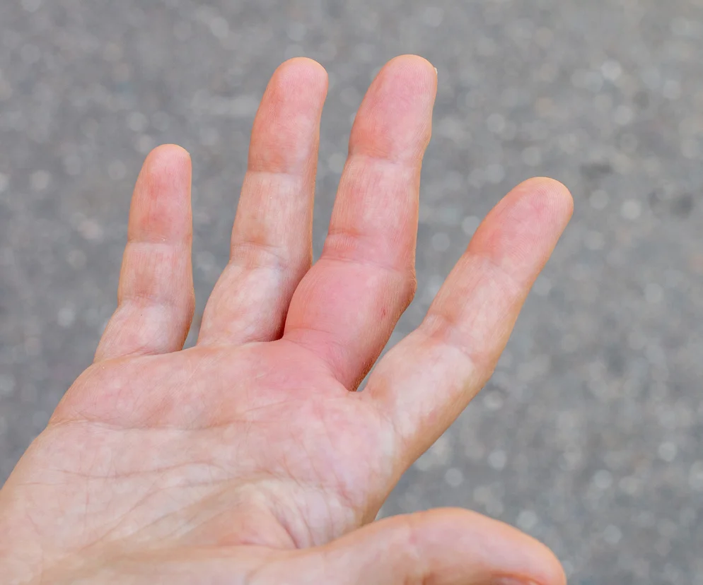 Jeden z sygnałów możemy zauważyć na dłoniach. Chodzi o tzw. rumień dłoni, określany także jako czerwone dłonie lub dłonie wątrobowe. Rumień dłoni występuje u ok. 23 proc. osób cierpiących na marskość wątroby. Jest także symptomem rzadkiej choroby Wilsona, czyli dziedzicznego zaburzenia związanego z nieprawidłowościami we wchłanianiu miedzi przez organizm.