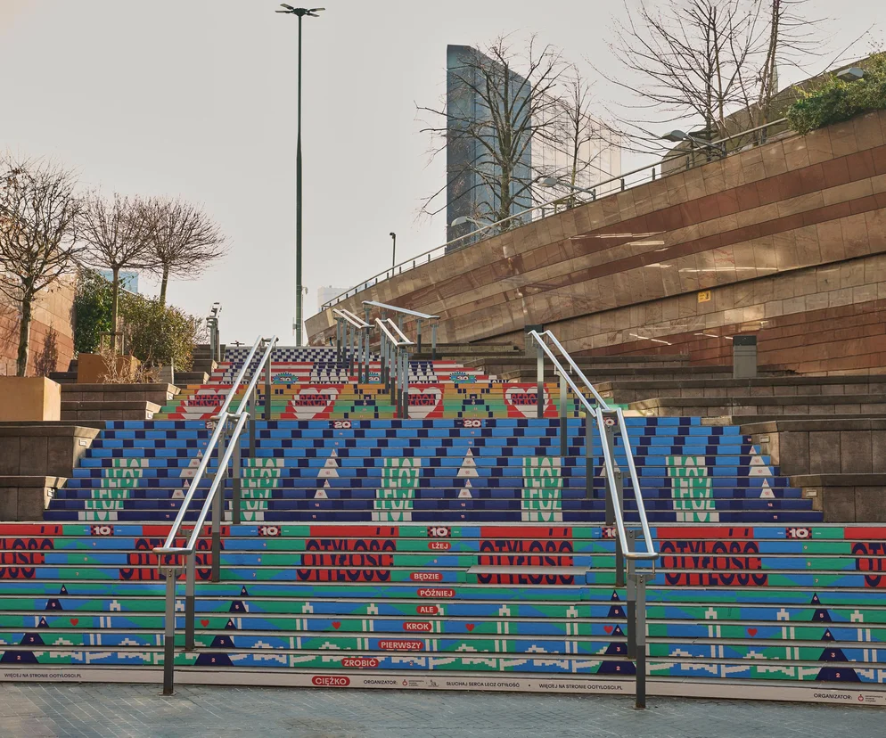 Mural na schodach Złotych Tarasów zwraca uwagę na problem otyłości
