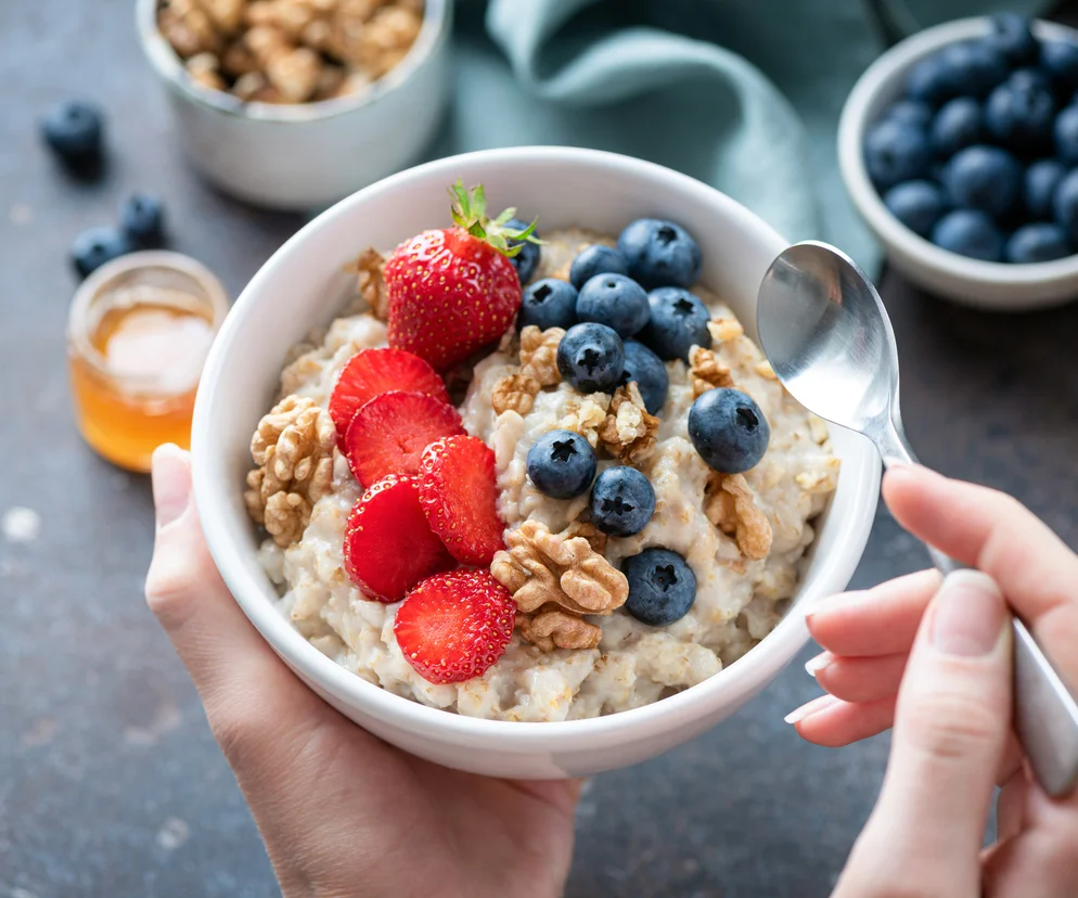 - Drugie śniadanie: kubeczek jogurtu naturalnego, osłodzony łyżeczką miodu z dodatkiem kilku orzechów włoskich