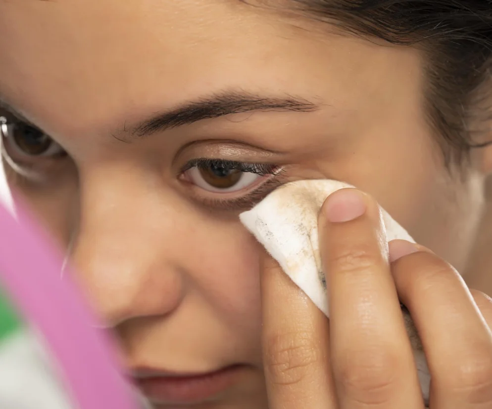 - Dane opublikowane w bazie medycznej PubMed Central jasno wskazują, że siłowe zmywanie wodoodpornego tuszu mechanicznie uszkadza i wyrywa rzęsy